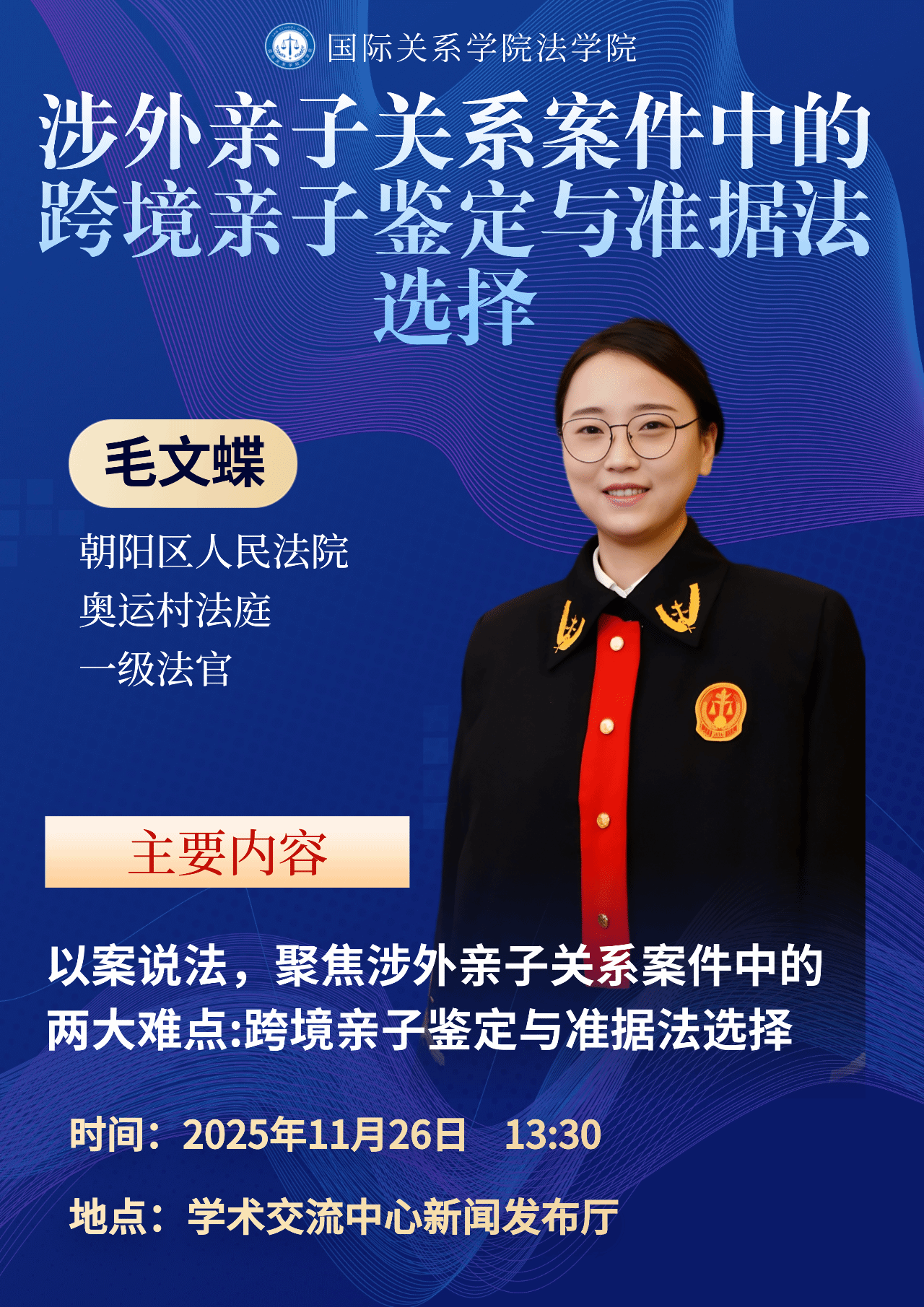 讲座预告 | 涉外亲子关系案件中的跨境亲子鉴定与准据法选择