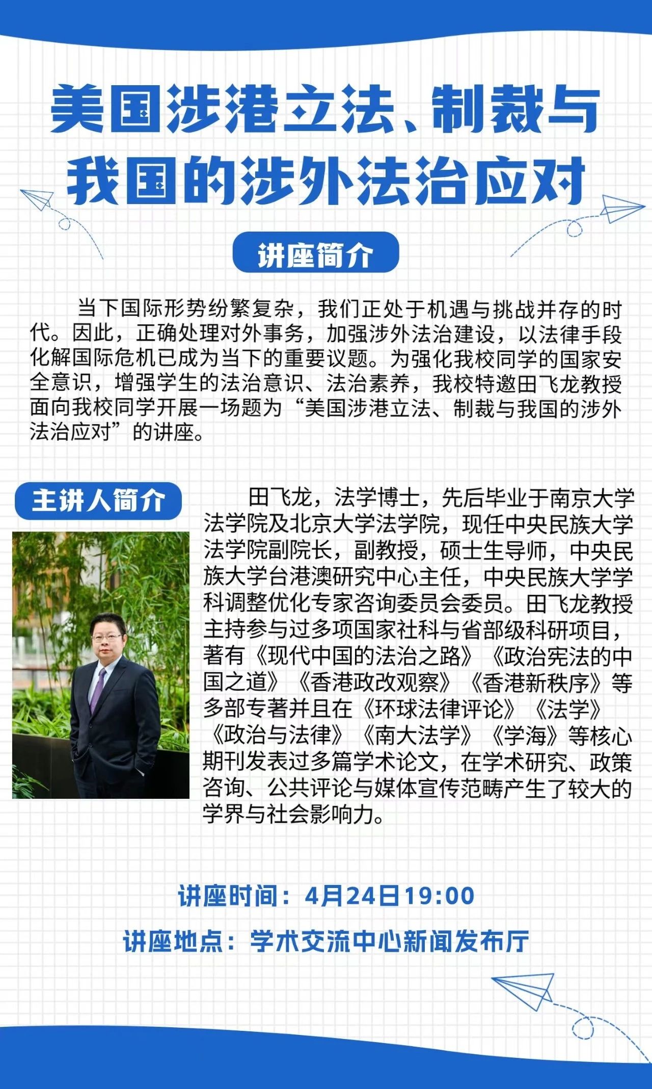 讲座预告|美国涉港立法、制裁与我国的涉外法治应对