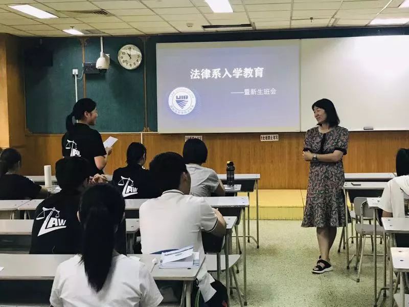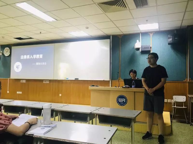 2019年9月8日,北京时间上午9时许,法律系入学教育暨新生班会于学术交流厅第四放映室正式举行。会议伊始,赵思斯老师进行开场发言,介绍今天入学教育的议程安排,第一项是张梦然老师向新生讲解培养方案,给予指导,第二项是两班分别召开班会。
