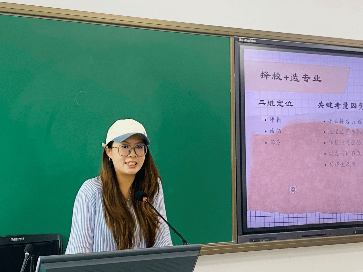 压轴出场的彭欣怡学姐以清晰的逻辑和详实的数据,为同学们梳理了留学申请的完整流程。她首先提出一个根本性问题:"你为什么要留学?"并从学术资源、就业优势、个人发展等角度进行了深入分析。"明确目标才能制定合适的申请策略。"她强调说。
