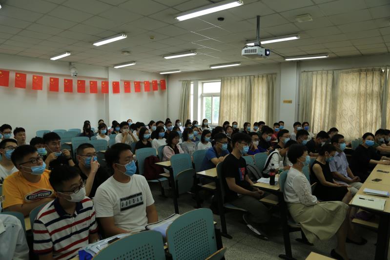 紧接着,叶景山老师与姜小蕾老师作为20级两个班级的新生班主任在会上与20级新生见面。两位老师对能够担任同学们的班主任和系里的信任表示十分的荣幸。在交流中,叶老师希望同学们能够做到自律、主动和热爱,更好地适应大学的生活,姜小蕾老师用风趣的语言提出了自己对学习投入值别开生面的见解,用自己身边的小故事告诉大家学会在失败中反思,学会由失败走向成功。