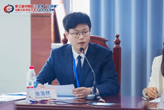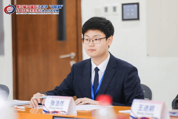 经过复赛前两轮的激烈较量,张浩然同学由于其出色的表现成功进入到半决赛阶段,与进入半决赛的18位选手开展涉外法律英语演讲的比拼。张浩然同学以“Data Protection”为题,结合Tik Tok跨境数据传输等热点案例与《网络安全法》修订等前沿焦点问题,从公民人权、企业责任与国家安全三个维度进行演讲。紧随演讲其后,张浩然同学在现场接受评委长达4分钟的随机提问。张浩然同学在半决赛中压轴出场,其精彩的演讲表现与出色的应变能力给评委留下了深刻印象。