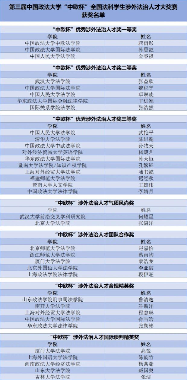至此,第三届“中欧杯”落下帷幕、圆满结束。在本届比赛中,丁宇欣同学荣获“中欧杯”涉外法治人才优秀奖,张浩然同学荣获“中欧杯”优秀涉外法治人才二等奖并获得中伦涉外英才奖学金两万元。