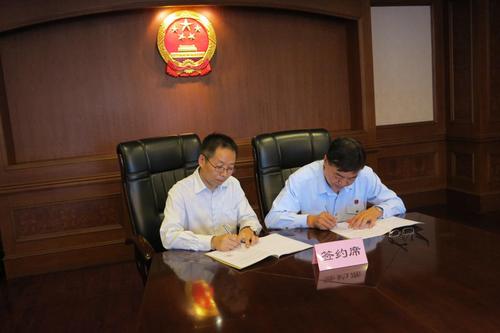 签署合作协议是本次会议关键环节。李汉军主任与滑争鸣副经理分别在协议书上签字并交换协议文书,双方的合作关系正式确立。