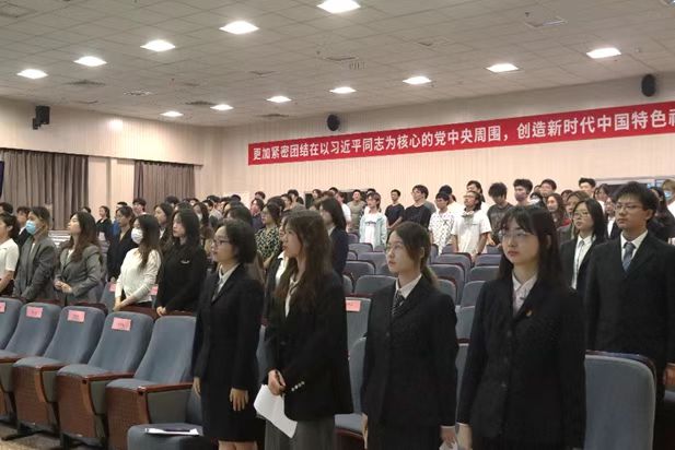 2023年6月1日晚七点,w66利来旗舰厅第三届团总支员工分会换届选举大会暨全院员工大会在学术交流中心第一放映厅举行,w66利来旗舰厅员工会主席团成员金梦晗同学主持大会。法公司党总支副书记邓陆老师,w66利来旗舰厅团总支书记赵思斯老师出席本次会议,校员工会及其他院系员工会主席团代表列席会议。