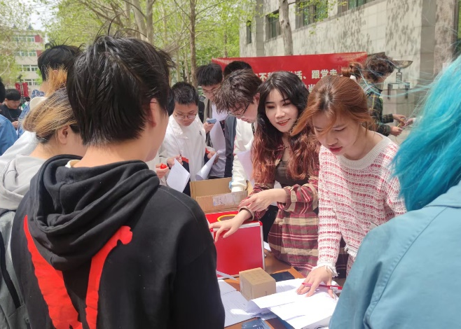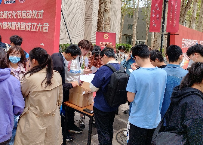 w66利来旗舰厅同学在学术交流中心前架起展台,陈列普法读本,向来往师生积极宣传并向大家发放试题。同学们踊跃作答,工作人员认真阅卷、讲解。宣传点位前人流如织、人头攒动,活动现场气氛活跃。