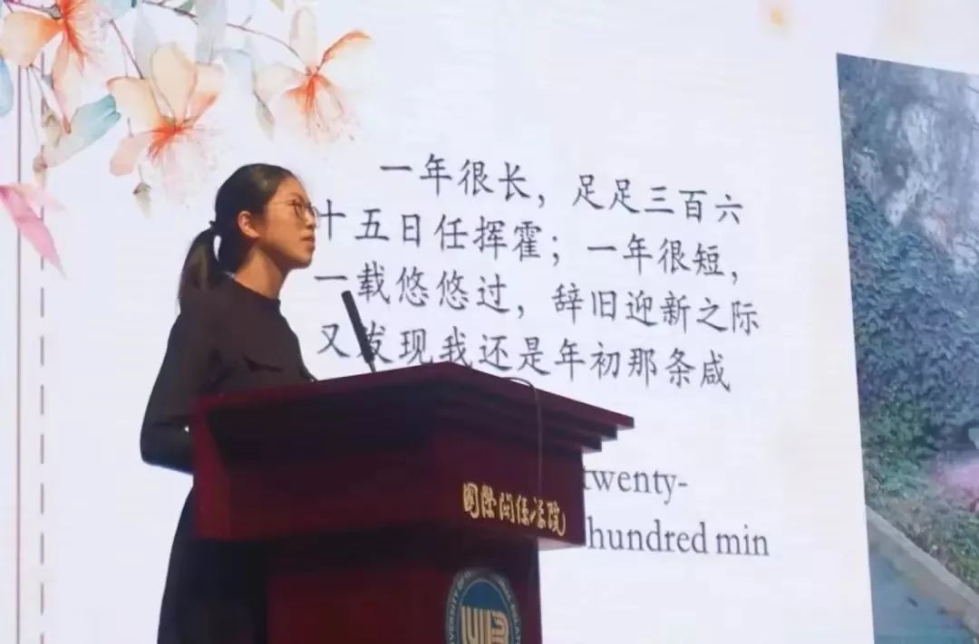 我系鲁远同学以“How to measure a year.”为主题进行演讲。“一年很长,足足三百六十五天任挥霍;一年很短,一载悠悠过,辞旧迎新之际我发现自己还是年初那条咸鱼......”鲁远同学用华丽而又幽默的词藻告诫大家要珍惜时间,万万不可虚度光阴无所作为。