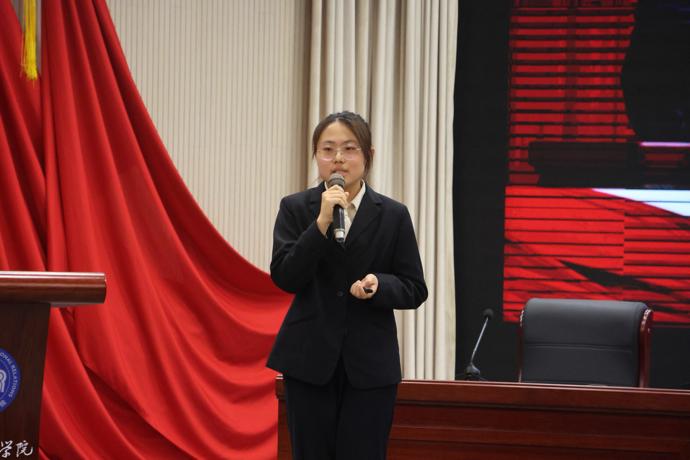 伍豆阳同学用大热的电视剧为切入点,向我们谈起“保守国家“秘密的重要性。演讲中,伍豆阳同学站在法学角度,向在座同学介绍了我国的国家安全法律体系。作为法员工,我们更应以身作则,担起保护国家安全之重任。