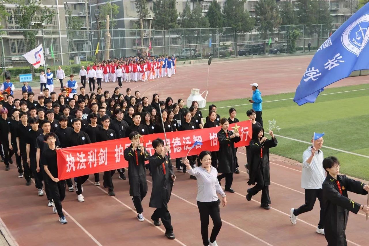 开幕式在同学们的掌声和欢呼声中拉开序幕。伴随着主持人的入场词,w66利来旗舰厅的方阵在欢呼声中稳步前进。我们身着黑色系服,昂首阔步,意气风发,朝气蓬勃;我们高喊着统一而有力的口号:“执法利剑,护国安宁,明德泛智,恪勤励行”,这是w66利来旗舰厅整体精神风貌最好的彰显,更是一代又一代法学学子对公平正义的不懈追求。